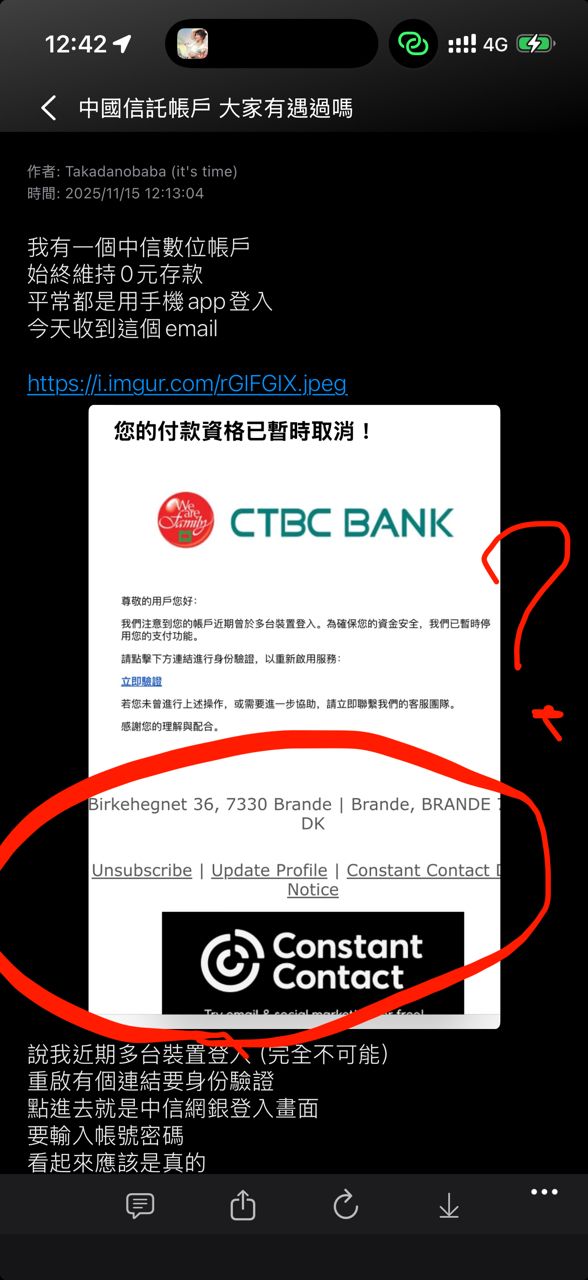 我昨天也收到一模一樣的email 不過我根本沒有中信帳戶不知道是哪裡個資洩漏了