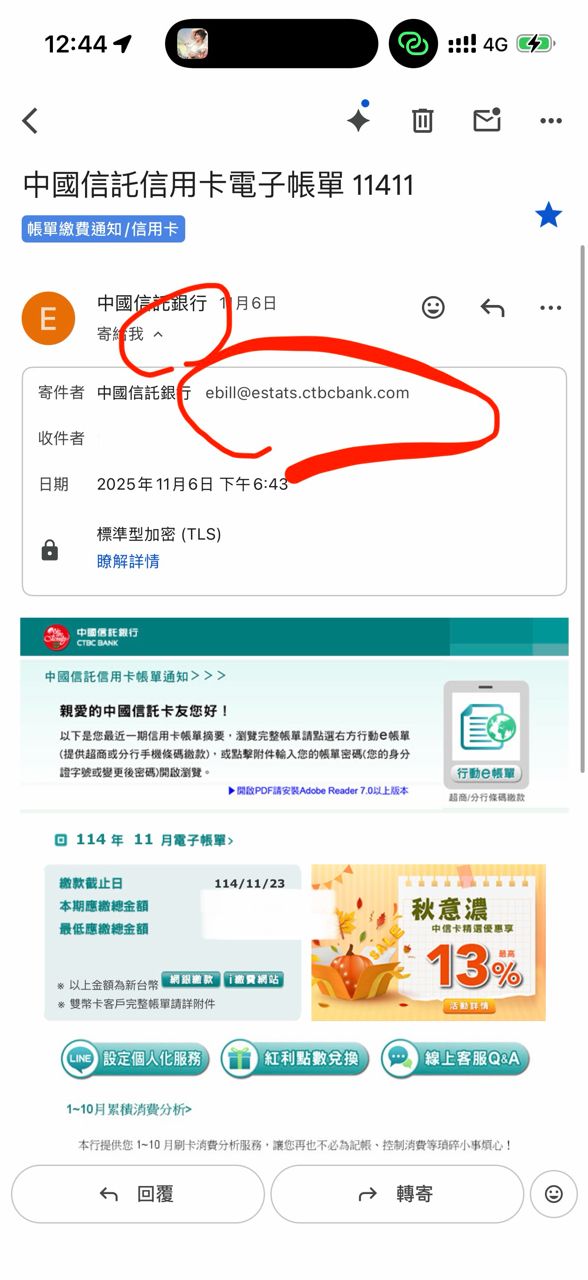 2025-11-15 15:47:00以後收到信,請先去中信APP看左上方小鈴鐺有沒有任何通知這都是可以很簡單自行查證的事情。