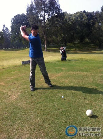 ▲王建民在台南自主訓練空檔,打高爾夫休閒。(圖/記者吳婷雯攝)