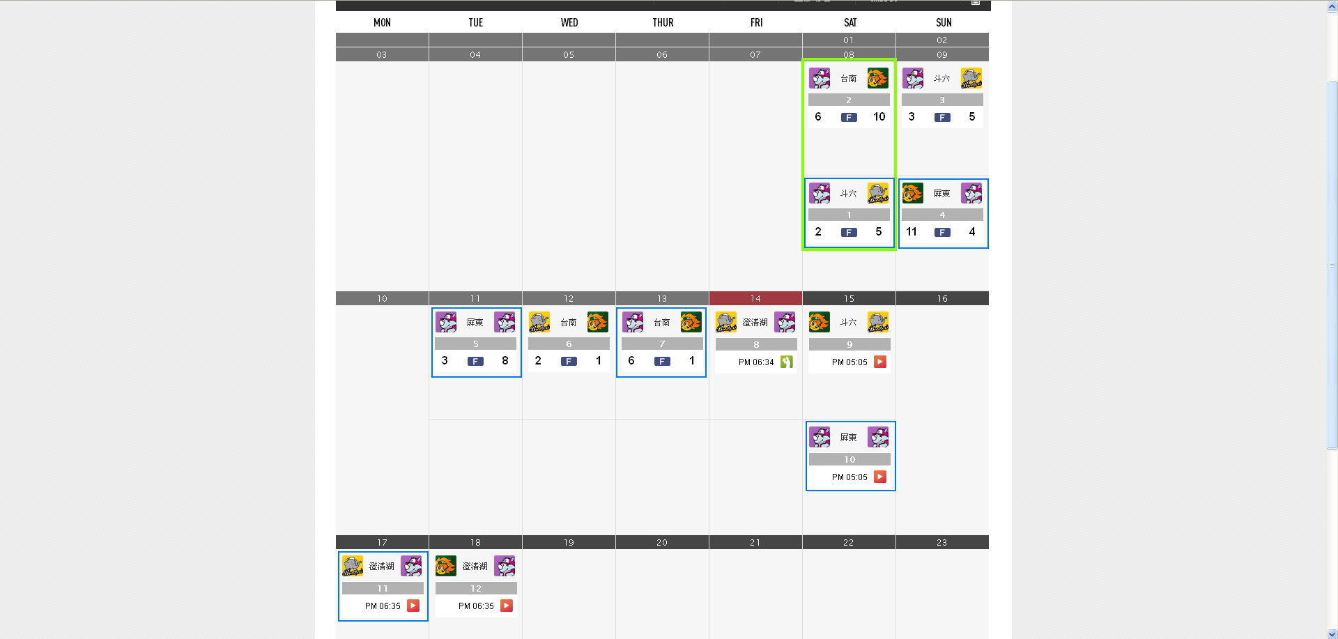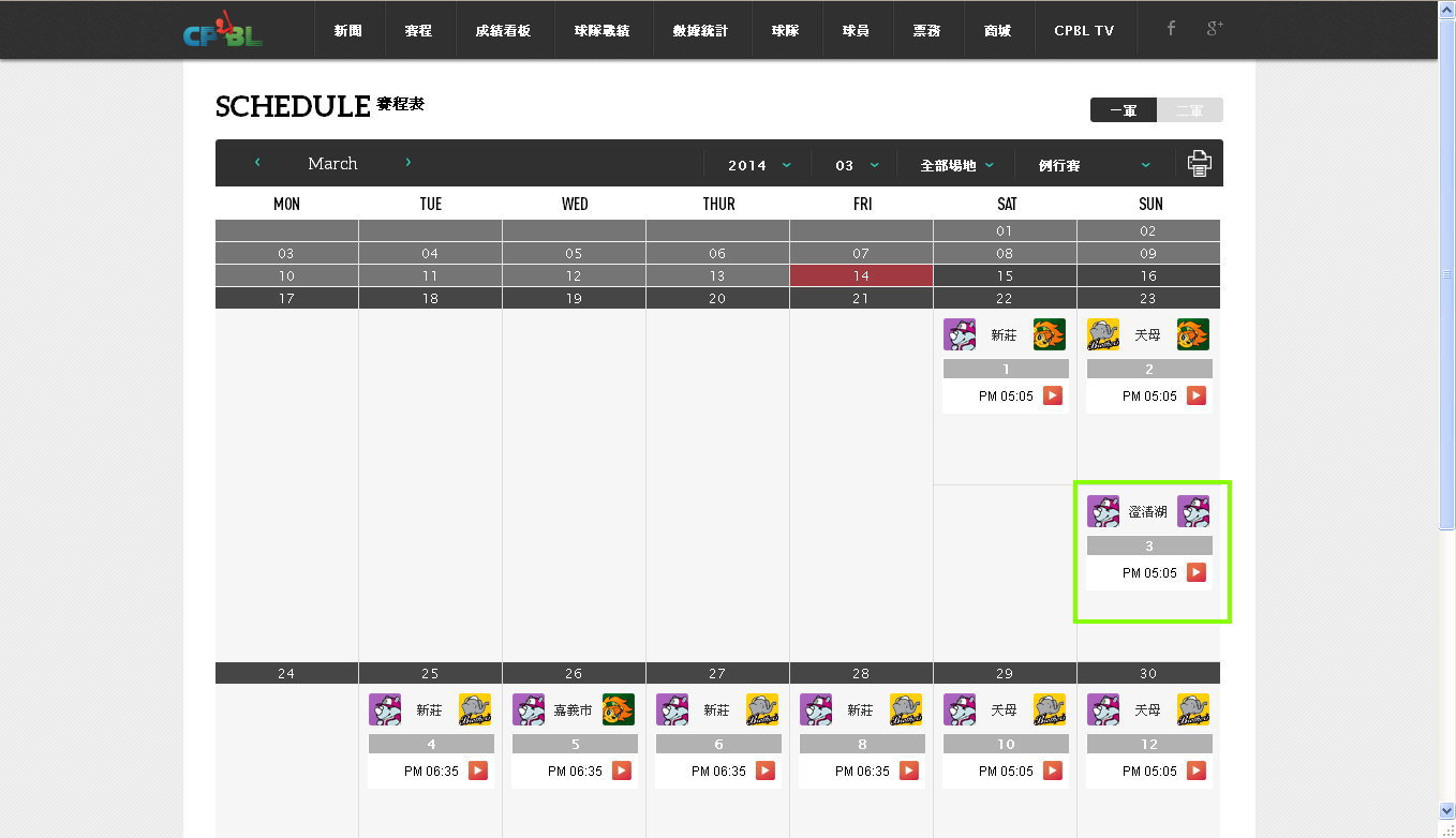 1.賽程表中2014年的例行賽第三場應為lamigo對義大
