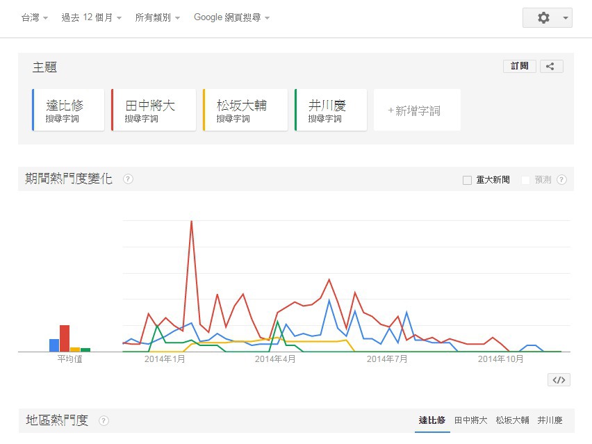近2年(2013-1月~2014-11月)區段也是田中高過達爾