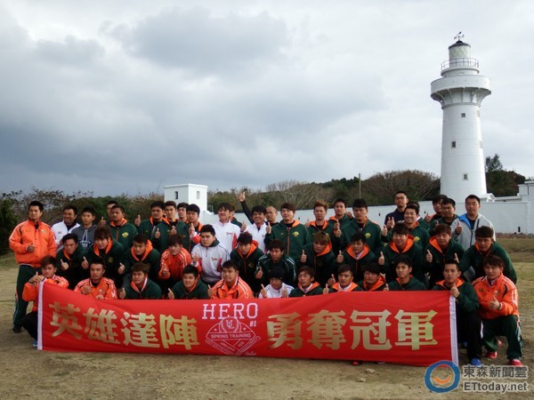 經過竹竿舞考驗後,全體球員在鵝鑾鼻燈塔前齊呼2015年年度口號「HERO!