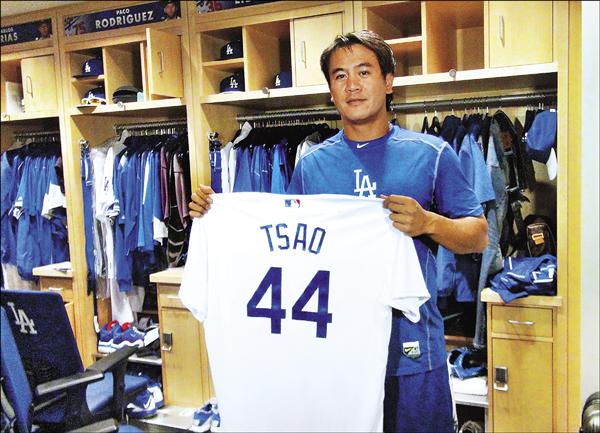 曹錦輝昨因路上塞車趕不及賽前熱身。但昨役道奇先發投手克蕭投出本季首場完封,並飆