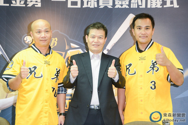 ▲兄弟與林明憲和王金勇簽下一日合約。( 影/記者陳立勳攝)