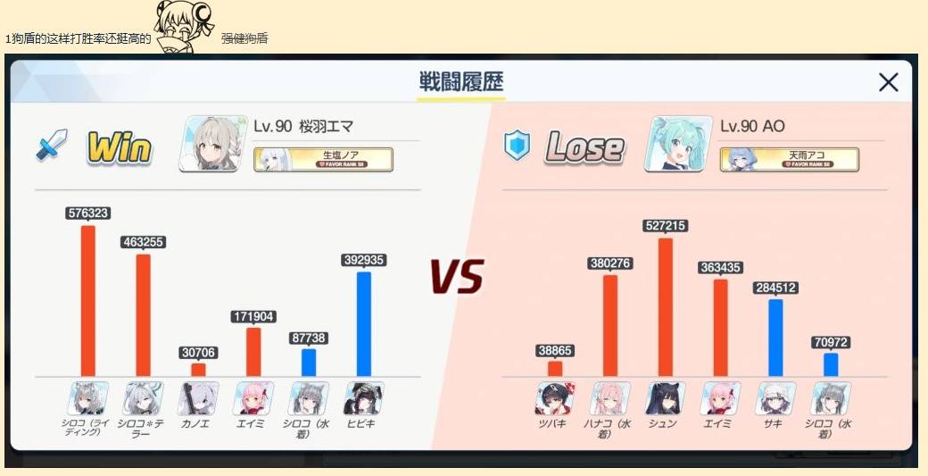 宮子我還是正常在用,沒有補充什麼新的坦,在這邊打前十沒啥問題一場很好玩的是對面椿跟瑪麗娜一直搞亂位置,結果放宮子繞過去單挑的幹掉了對面的花子這邊的旬在防守幾乎絕跡,所以カノエ也基本上沒人用泳裝花子或戰叔 + 英美 + 坦或ツルギ + 椿,後排泳裝白子+サキ,我都是用這套在前20打