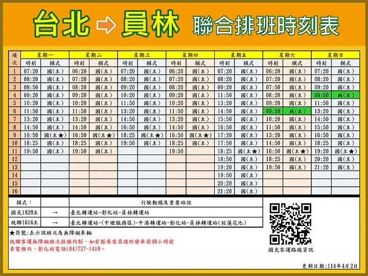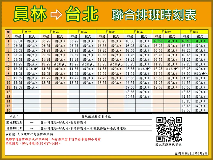 「【1616】臺北—員林」路線,因應營運許可證屆期,