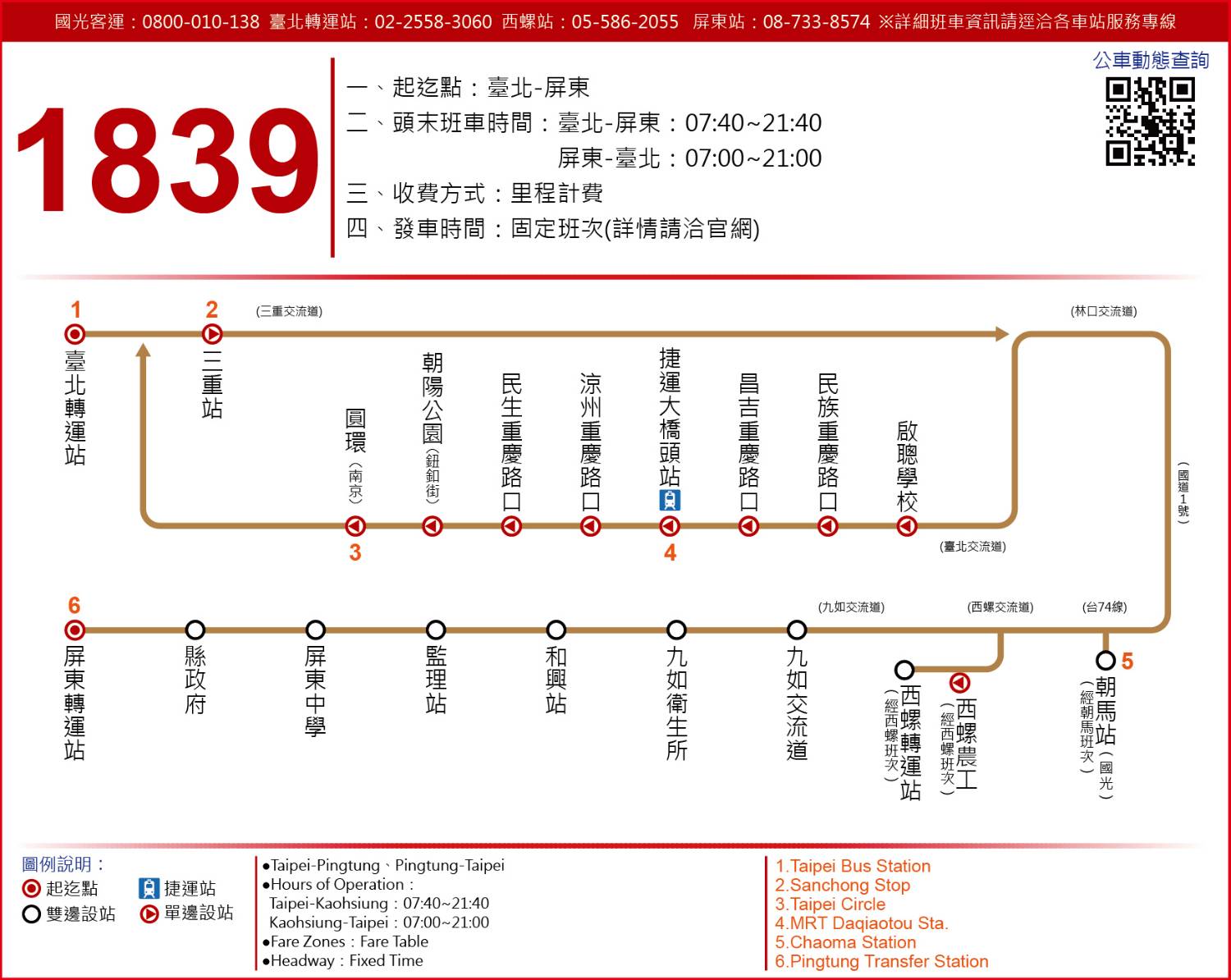 營運路線 國道客運 1613 臺北-屏東 [經環北]