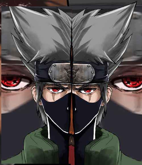 卡卡西在大戰中不甘寂寞 於是他也有了一雙開通的血輪眼