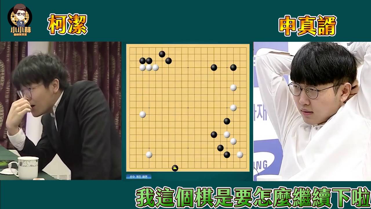 申真諝滑鼠點錯 柯潔立刻面臨巨大的壓力 這盤不能輸輸的話就是申真諝下錯一手還可以贏自己 這非常嚴重不是滑鼠點錯而是腦袋打劫的經典案例是這個