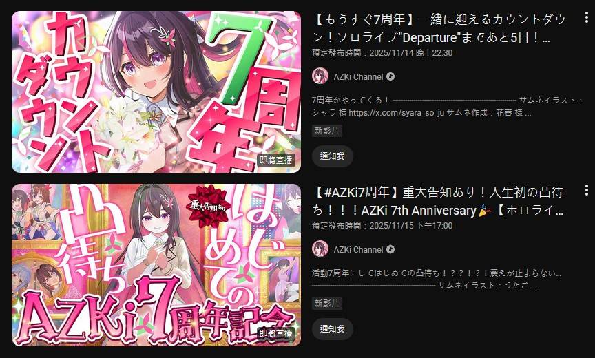 2025-11-14 07:00:00資料來源:https://schedule.hololive.tv/