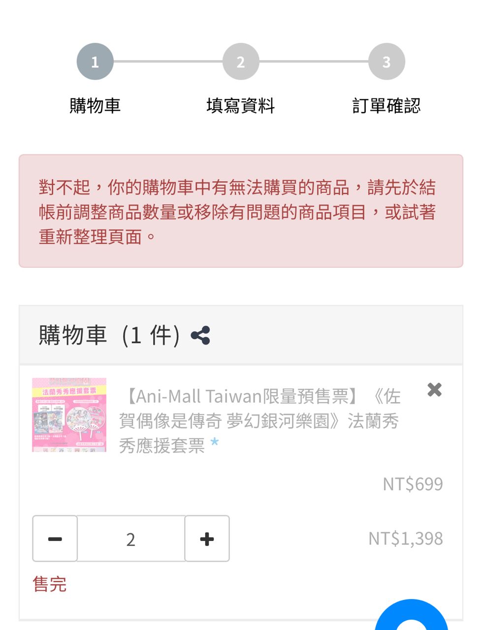 欸? 我剛整點晚大概30秒點下去,還點錯數量改回1組之後結帳有買到,還以為很好買@@