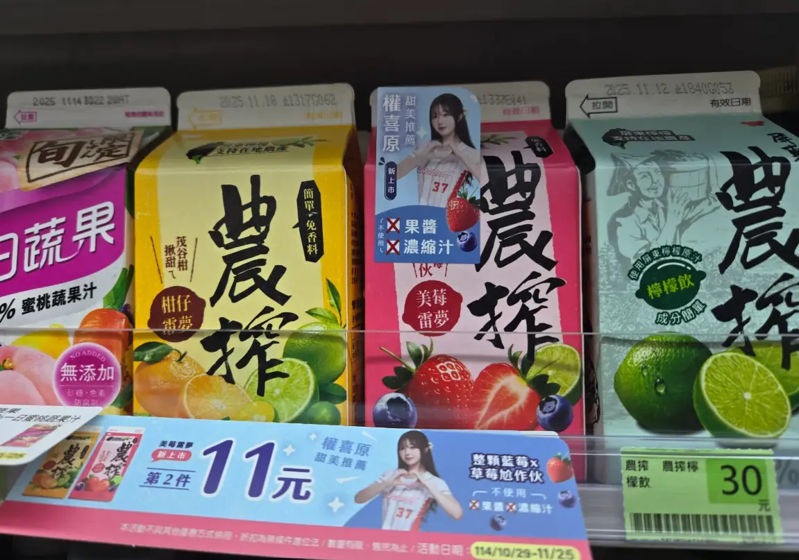 農榨是味全自己的 不過味全今年本來就有跟全家合作三明治之類的產品會放人物照片 球員或小龍女都有