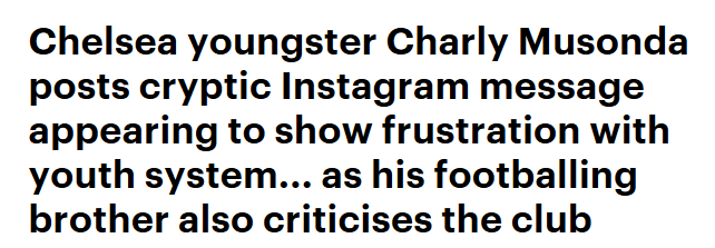 尷尬的是,穆桑達如今卻公開質疑了切爾西的青訓體系。