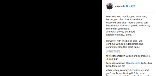 在對自己在俱樂部的現狀表達不滿和失望。而一些切爾西球迷紛紛留言安慰穆桑達,