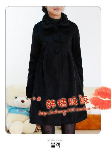 6.甜美風格氣質翻領單排扣大衣外套 (黑色)