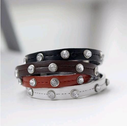 12.韓版。可拆式細緻鑲鑽皮質手環*組合