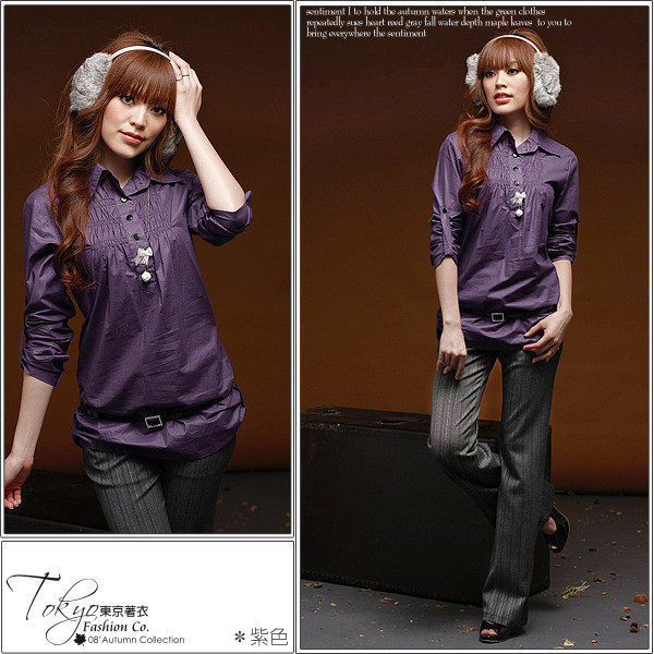 9.水鑽皮帶光澤長襯衫長板長版襯衫