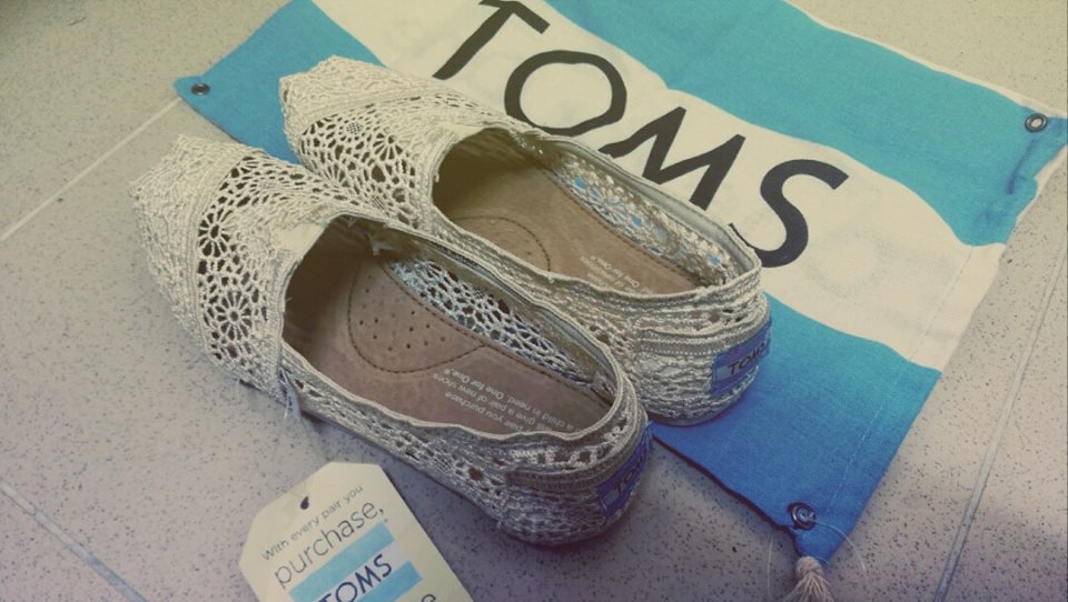 a.TOMS 縷空白色蕾絲休閒鞋