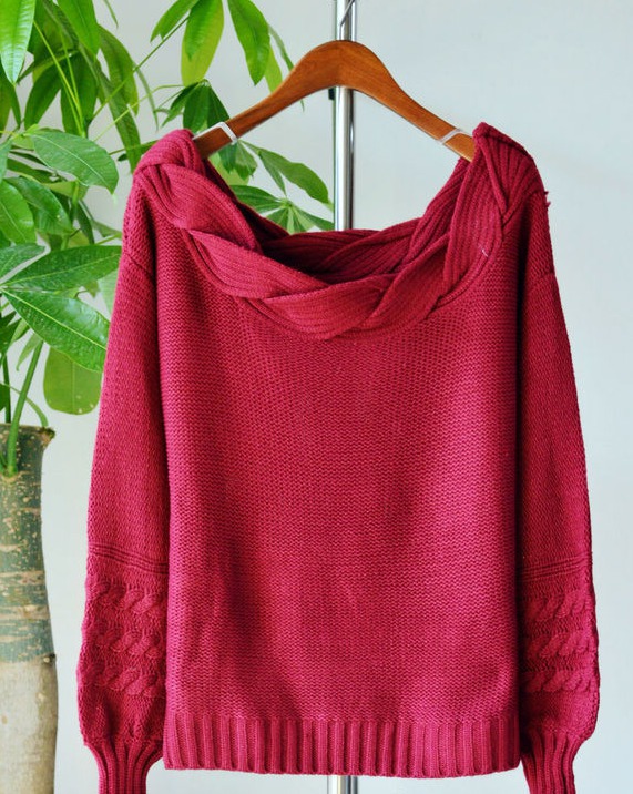 (1)物品名稱/網址:甜美性感兼具的一字領露肩麻花毛衣紅色