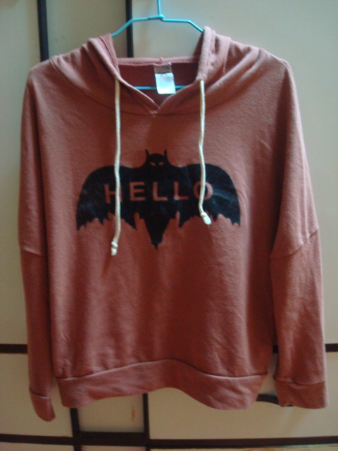 韓製BATMAN飛鼠袖抽繩帽T磚紅