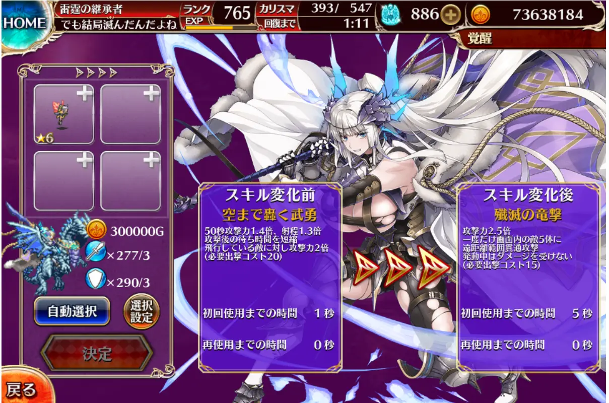 技覺:單發攻擊,攻擊上升、多目標遠程範圍貫通、發動中不受傷