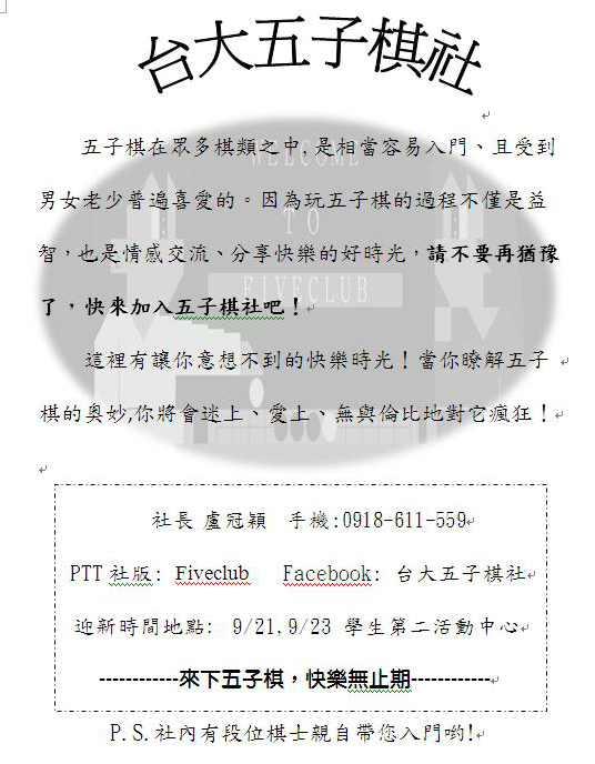 [轉錄][棋會] 八月份新莊棋會(8/20 六)
