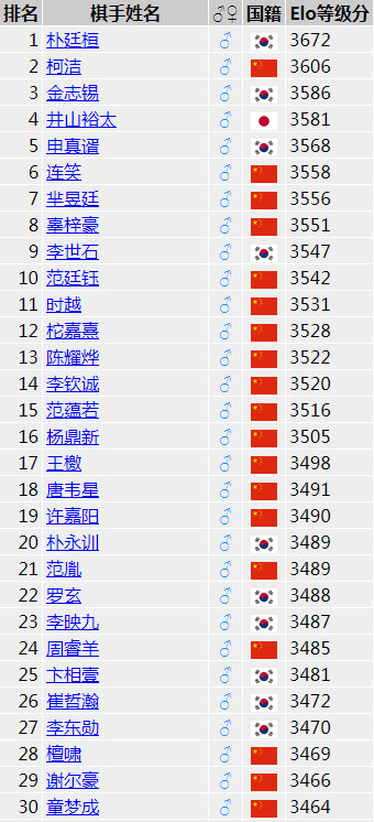 Goratings排名前三十: