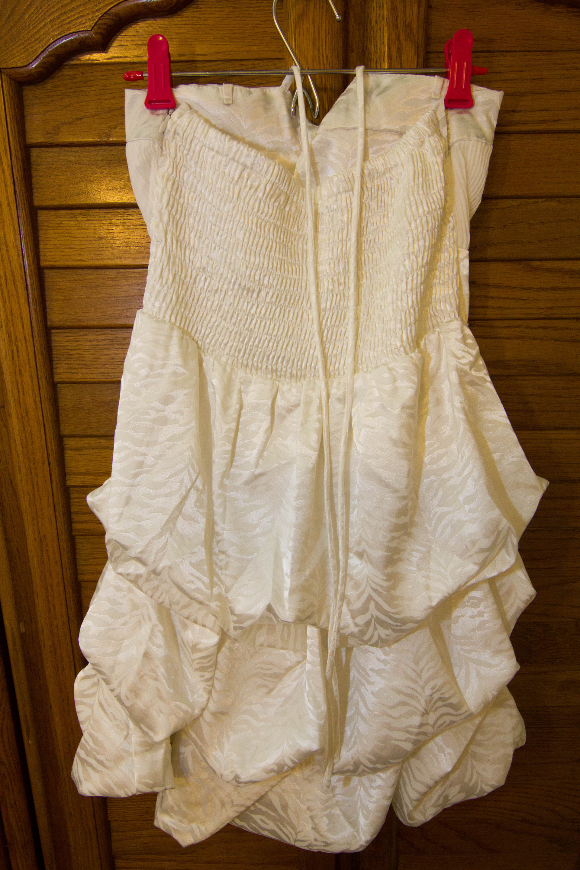 1. 白色緞面露肩短禮服 購於日湖百貨