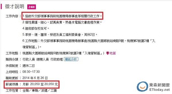 : 當各界批評22K薪水根本難以生活時,某派遣公司在求職網站上刊登「外交部領事事務局