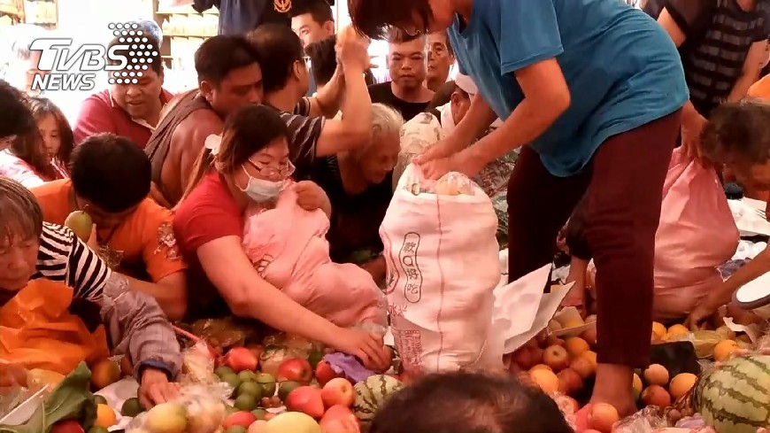 鑼聲一響,有如起跑哨聲一吹,說好了不要擠哪有可能!,總價20萬,1千多公斤的水果5
