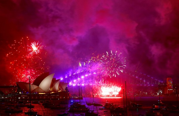 雪梨在台灣時間18時施放長約8分鐘的「家庭煙火秀」。(路透)