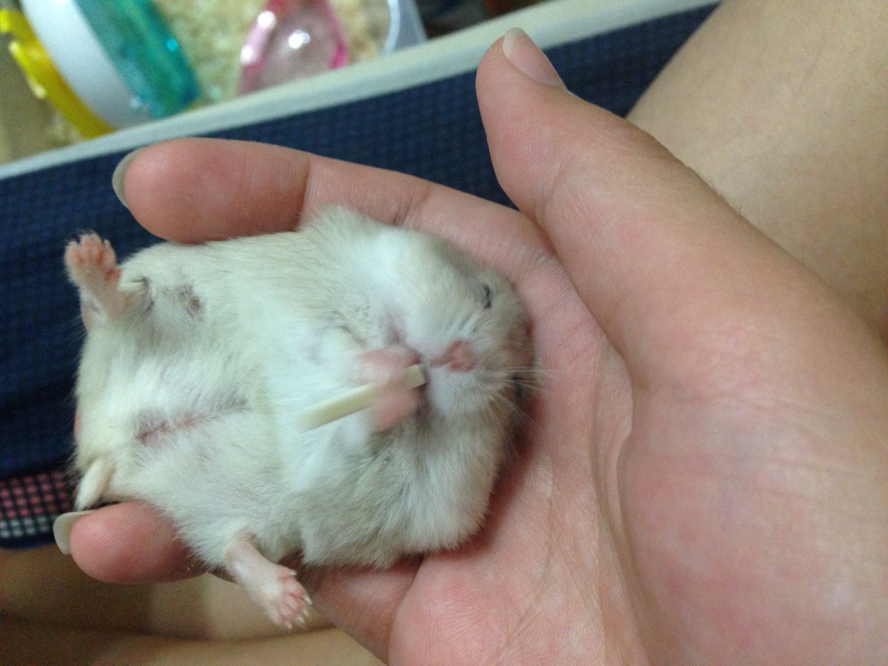 我家的鼠鼠也會這樣乖乖在我手上 超可愛的~