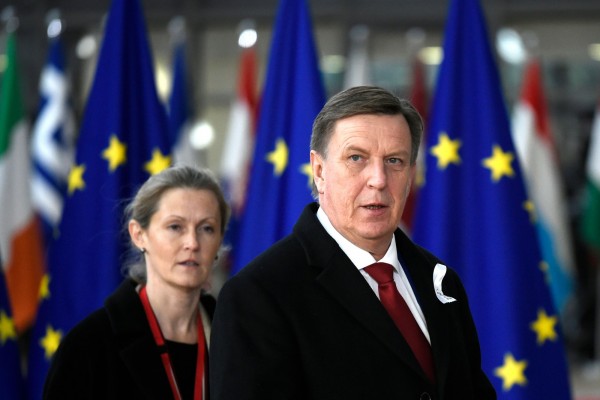 圖為拉脫維亞總理庫欣斯基(Maris Kucinskis)抵達歐盟總部參加領袖峰會。