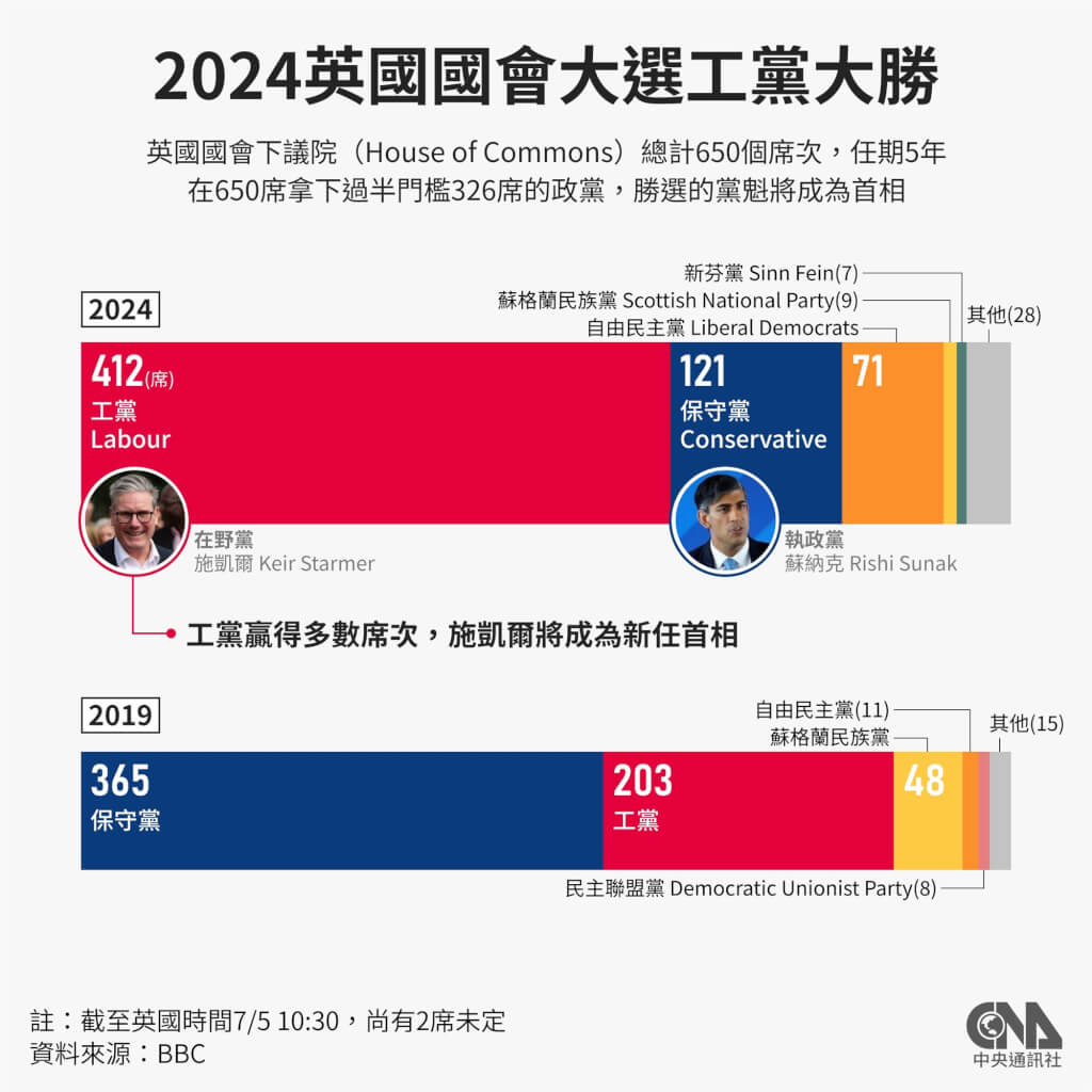 (中央社倫敦4日綜合外電報導)英國國會選舉出口民調顯示,工黨拿下過半多數席位,