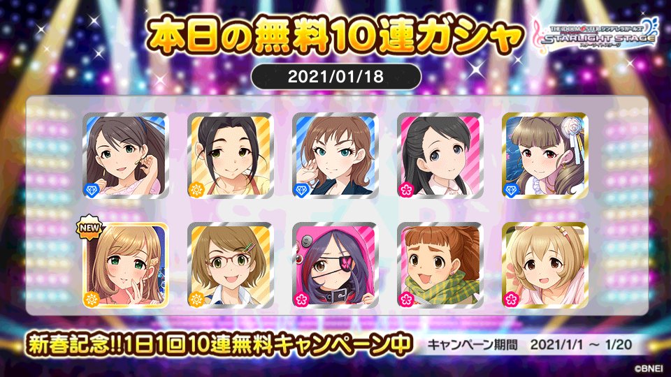 2019-01-12 15:07:00回憶池免費10連終於開張了,下面三樓報CG擔當100P我要去抽台版限定美希了