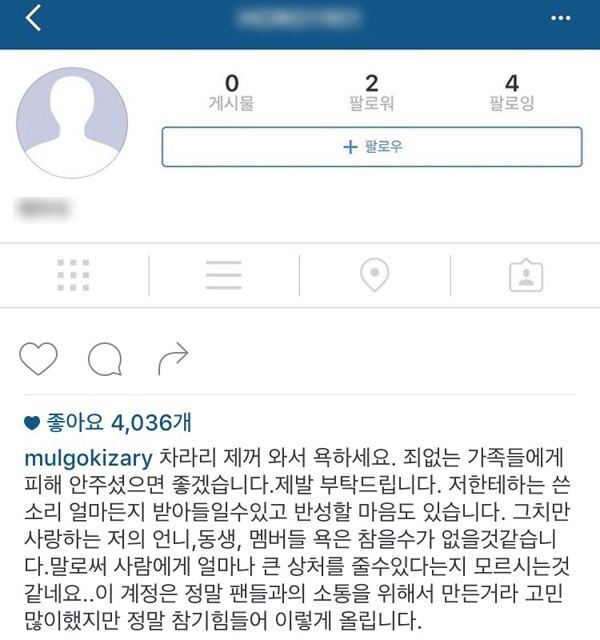 姊姊與成員南珠同學的Instagram上留下各種惡意留言,已經嚴重影響他人的生活,不難