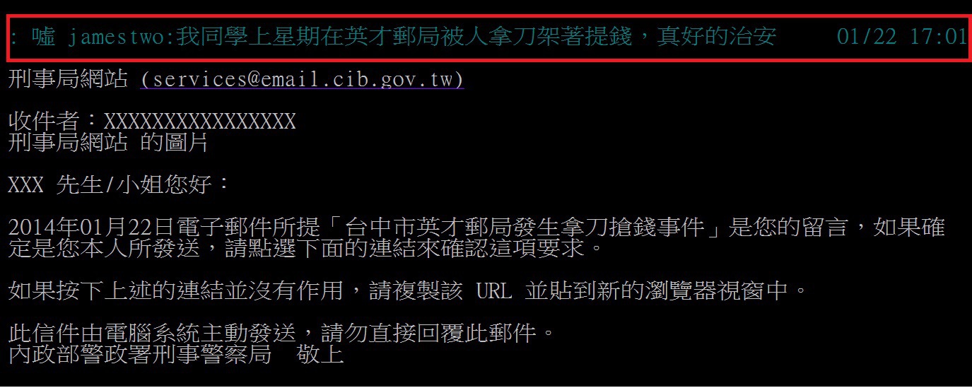 當時我已經有寄站內信給 jamestwo 大 跟他說警方找他