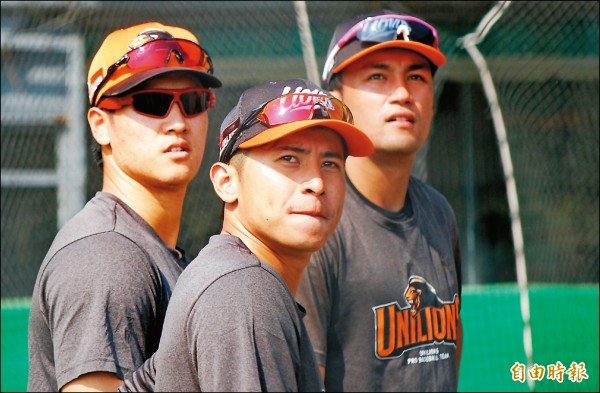 統一獅蘇智傑(左)和陳傑憲(中)的調薪受矚目。 (記者吳清正攝)