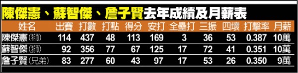有新人資格,否則他們的表現都是新人王等級,陳傑憲打擊率和安打都是聯盟第2,僅次