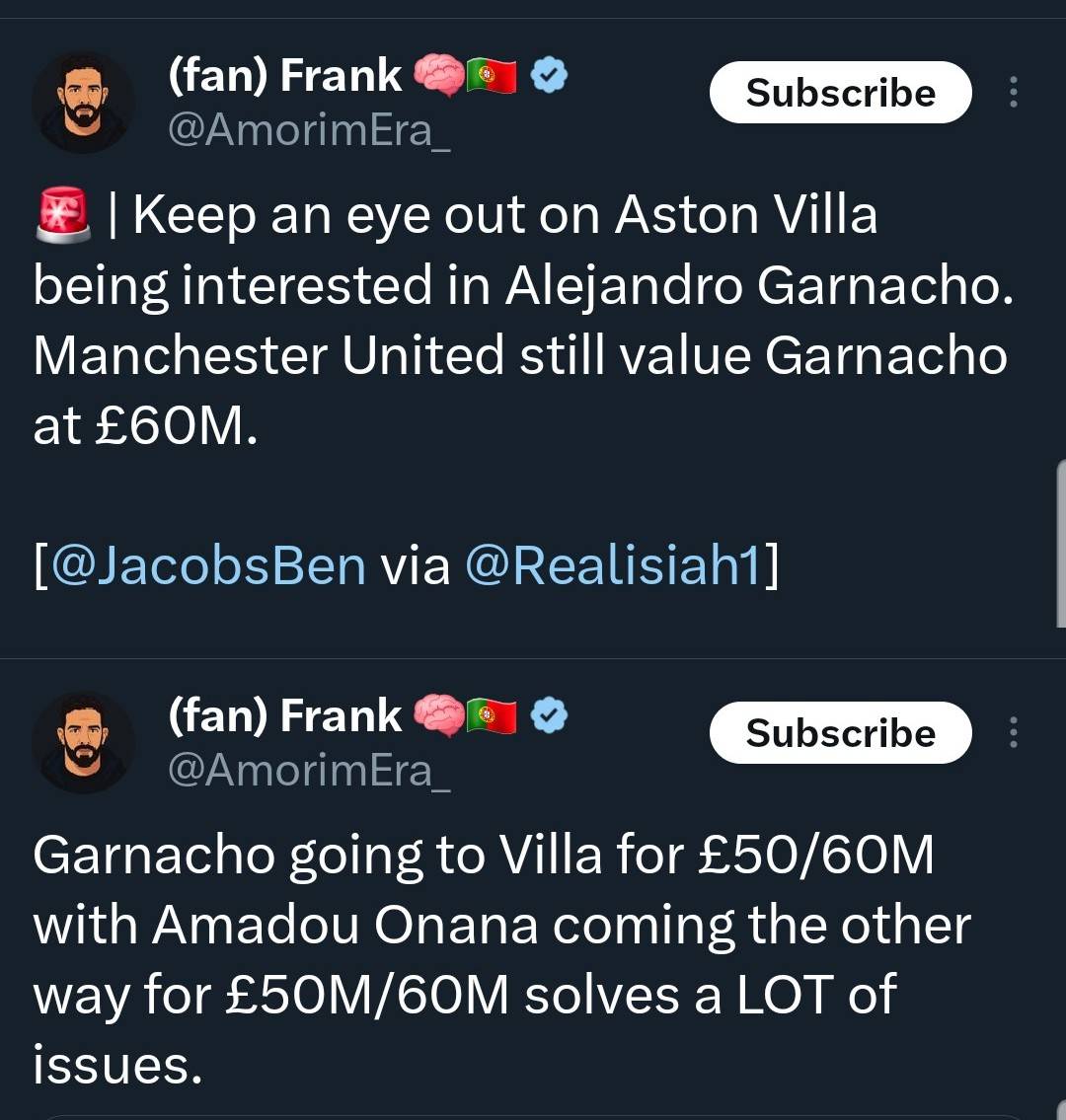 披薩對Garnacho的估價是£40m,曼聯要價為£60m,中間的某個價格可能會達成交易