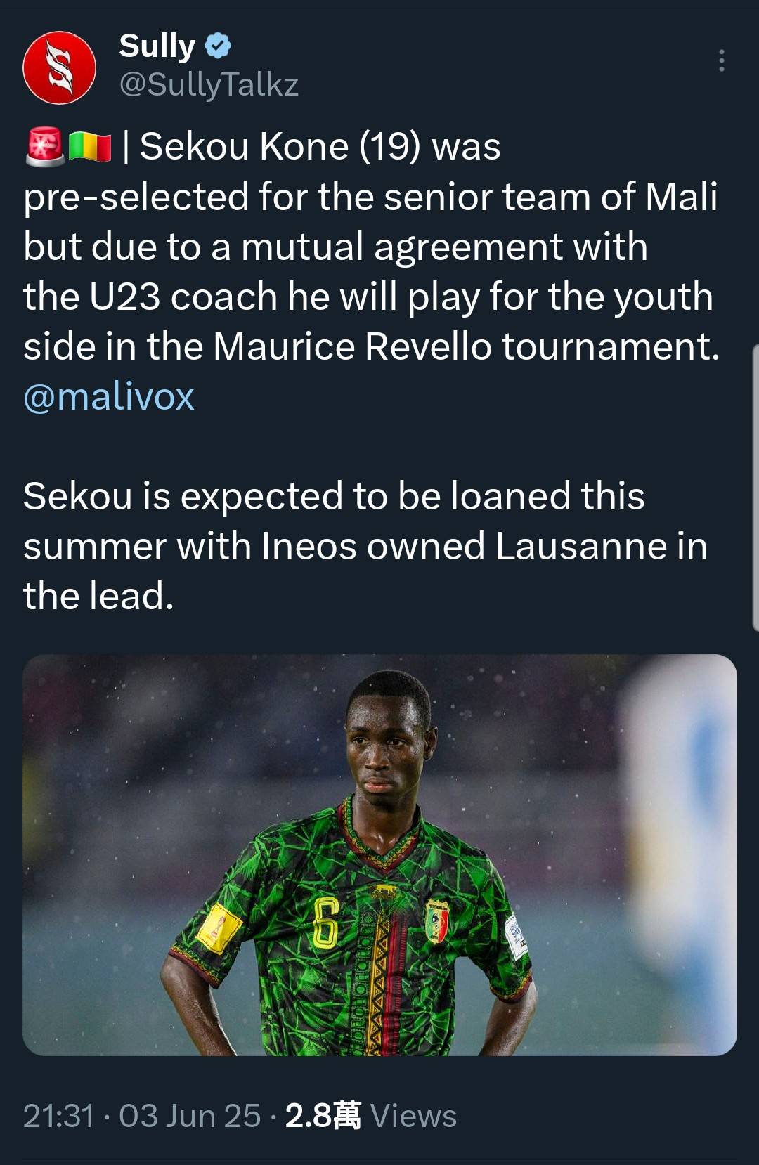 2025-06-11 17:01:00目前看起來他要罷訓推動轉會了不過我說實話60m還是蠻貴 哈哈