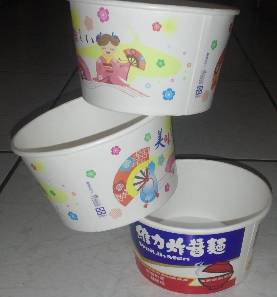 家裡沒有酒杯,拿三個一樣大小的泡麵碗堆看看。