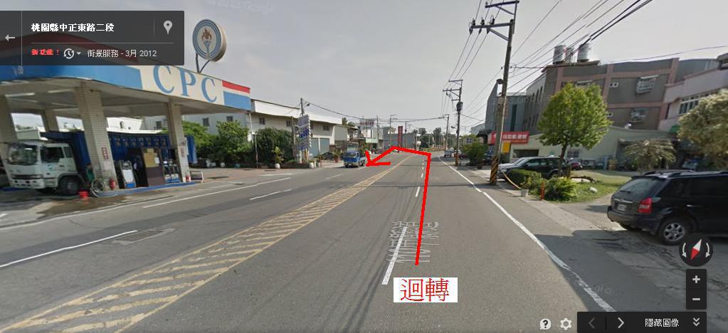 保持在外線直走到倒數第二個紅綠燈(有鐵架那個) 右轉走 右前方小巷 到達中正東路二段
