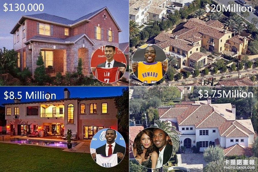 林書豪 (休士頓13萬美元) DH(洛杉磯2000萬美金) CP3(前任屋主為艾薇兒850萬)