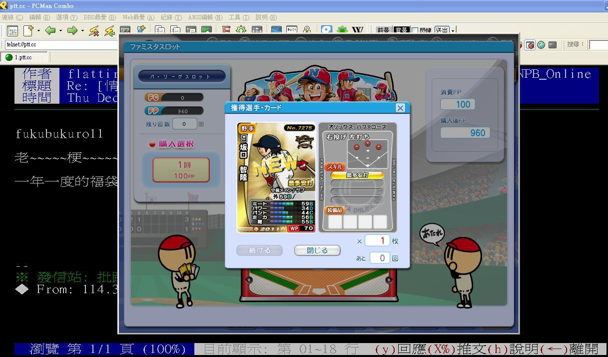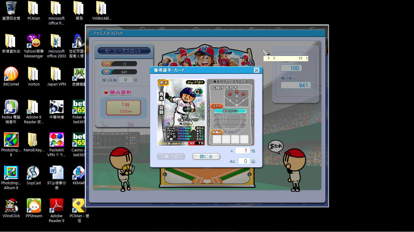 今江敏晃(銀) 野村祐輔(銀)大引起次(銀) 網站又復活了XD永川勝浩(銀)山本哲哉(金) 這遊戲平常抽卡都沒聲音 金卡居然有XD青山浩二(金) 幹都分身中獎麻吉嬸(金) 最屌中繼 爽啊高橋朋己(銀) 應該沒機會上場了 前面那隻太威阿鳥(金) 這張有以前神之卡的等級