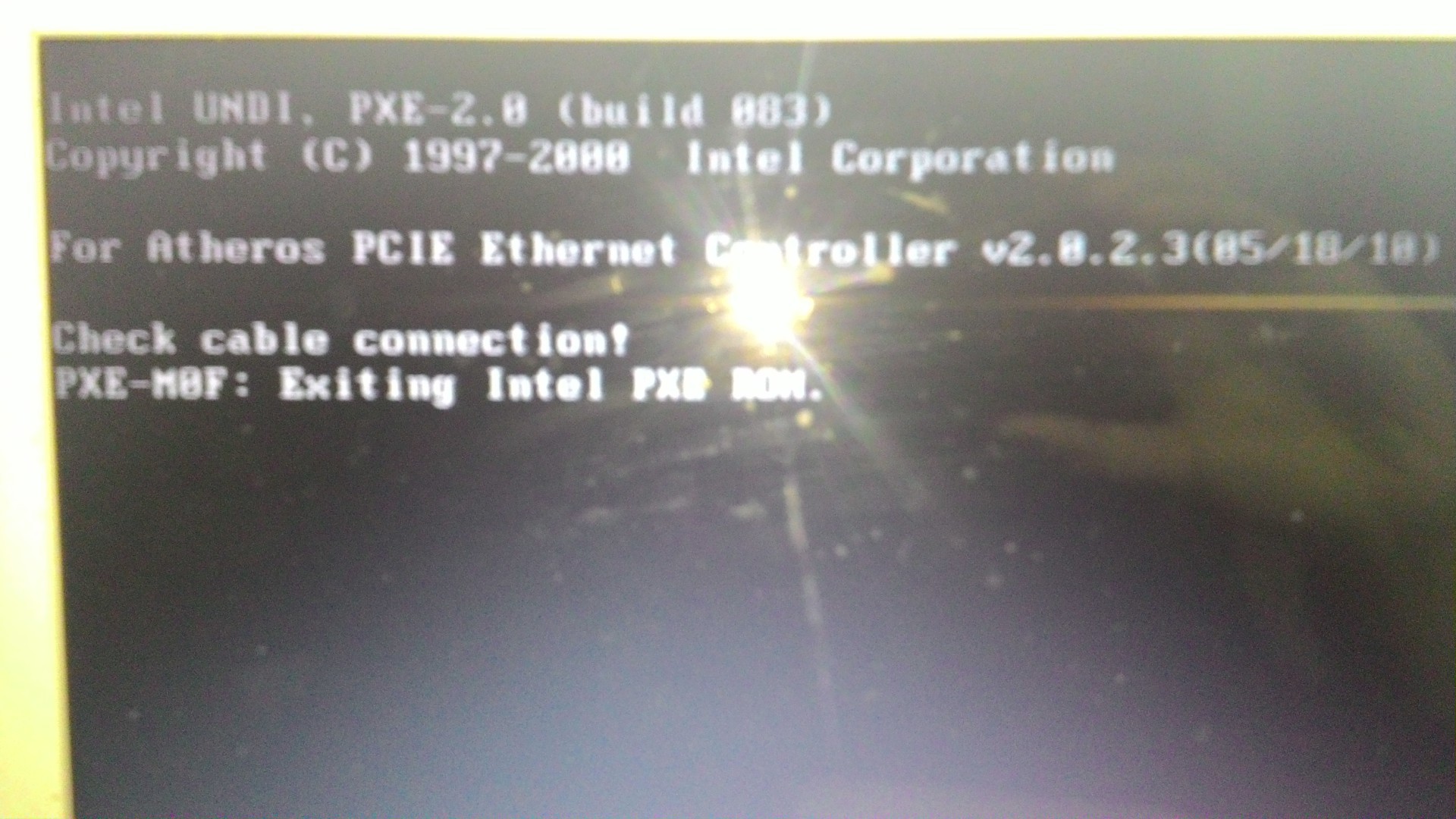 那不是當機畫面,應該是網路開機(PXE),檢查一下你bios裡開機裝置順序是不是網卡在硬碟之前