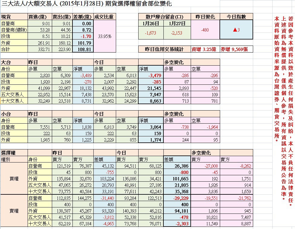 [其他] 三大法人&大額交易人期權資料 2015/1/27