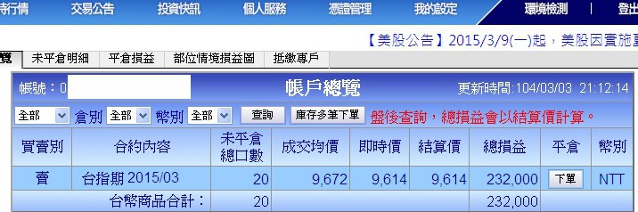 2015-03-03 13:51:00今天虧損114點