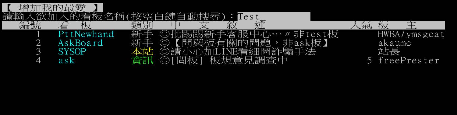 [請益] 如何尋找看板後直接將看板加入我的最愛