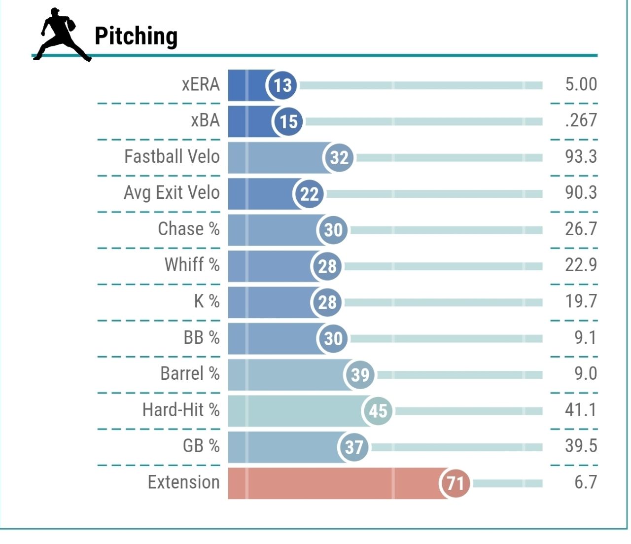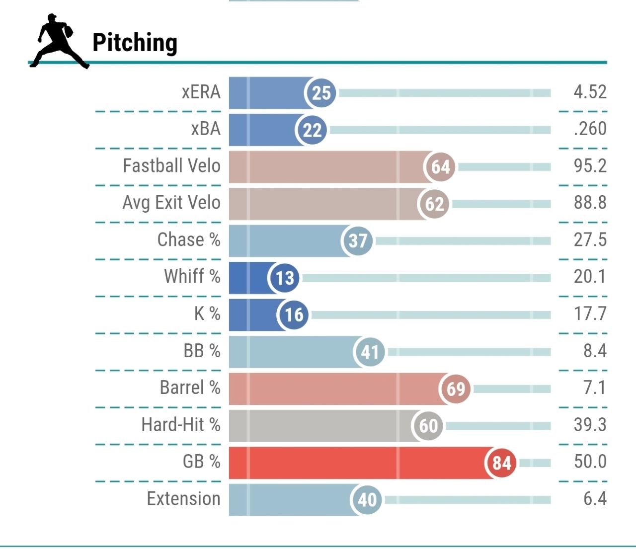 率與HR/FB,導致ERA腫脹。速球肉包但滑球系很好,看起來是個靠控球吃飯的投手。